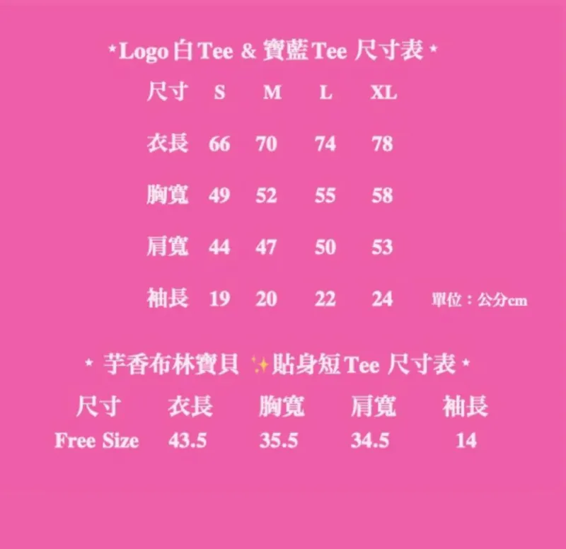 📐 尺寸表單請見附圖 See measurements in attachment